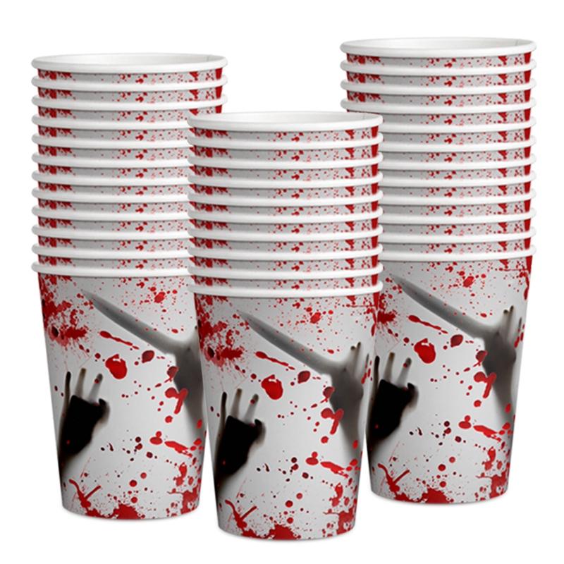 10pcs Halloween Disposable Blood Handprint Tableware Horror Party Decoration, Style: 7 inch Paper Plates