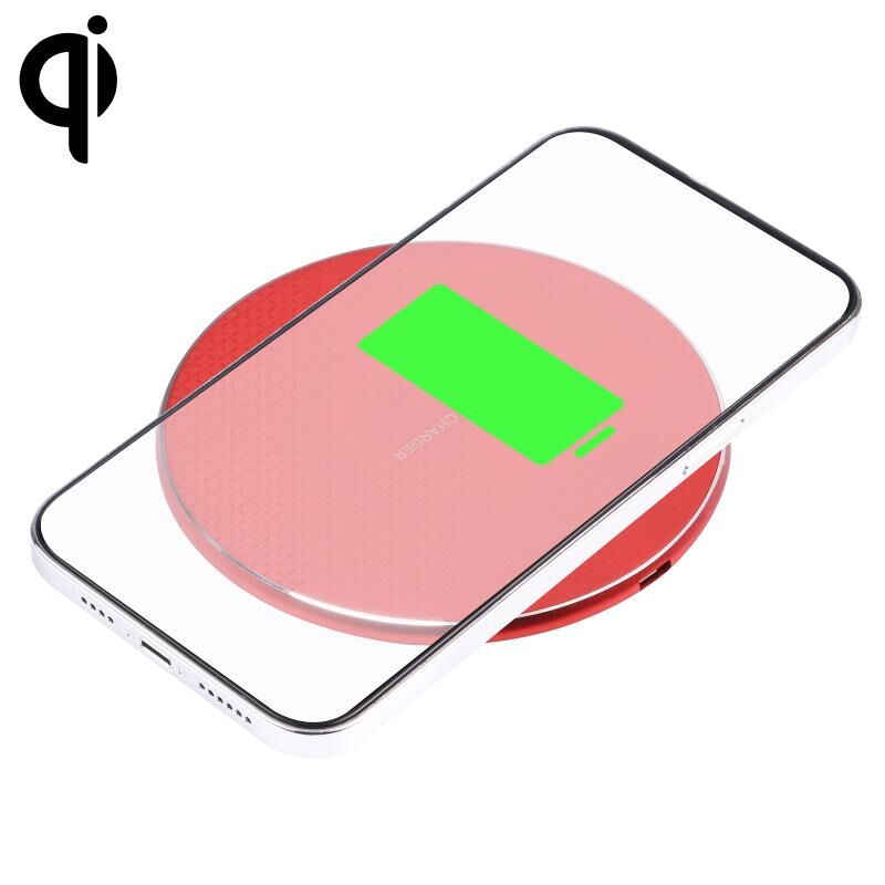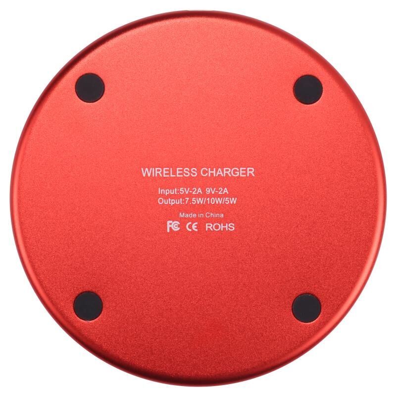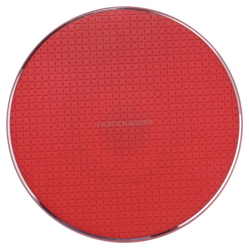 Ασύρματος Φορτιστής 10W QI με Σχέδιο Καρό, Στρογγυλός, Μεταλλικός (Κόκκινο)