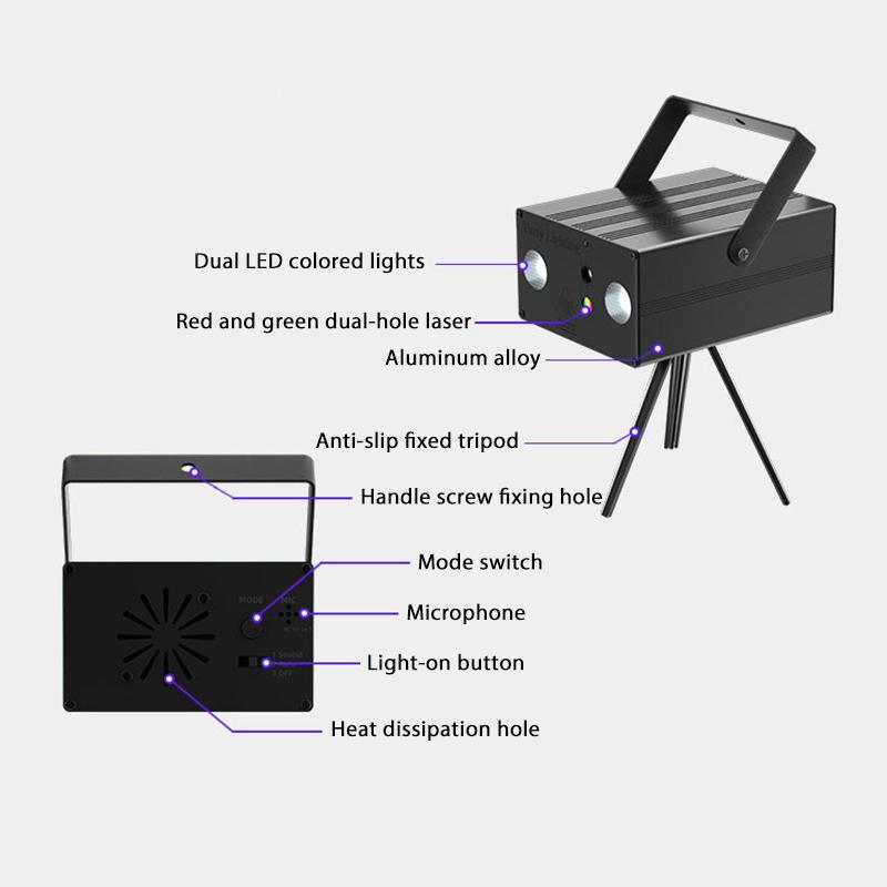 2. LED RGB lights, red and green dual-hole laser, multiple lighting modes
