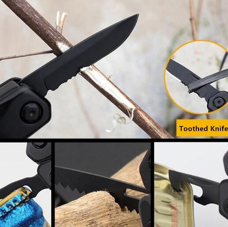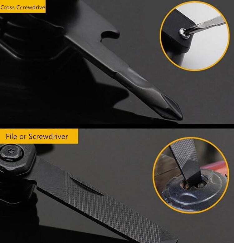 4. Λειτουργία (11 σε ένα): Κλειδί ασφάλισης ψαλιδιού, κλειδί ασφάλισης λαβής, ισχυρό ψαλίδι, λίμα, διπλή οδοντωτή ξύλινη πληροφορία, σταυροκατσάβιδο, μεγάλο κατσαβίδι με επίπεδη κεφαλή, μεσαίο κατσαβίδι με επίπεδη κεφαλή, μικρό κατσαβίδι με επίπεδη κεφαλή, κύριο μαχαίρι