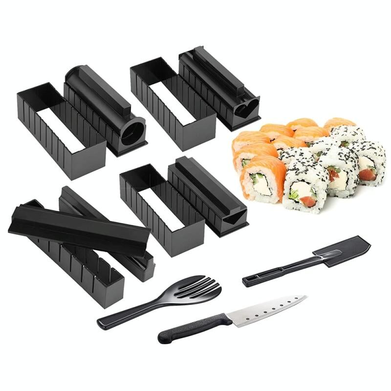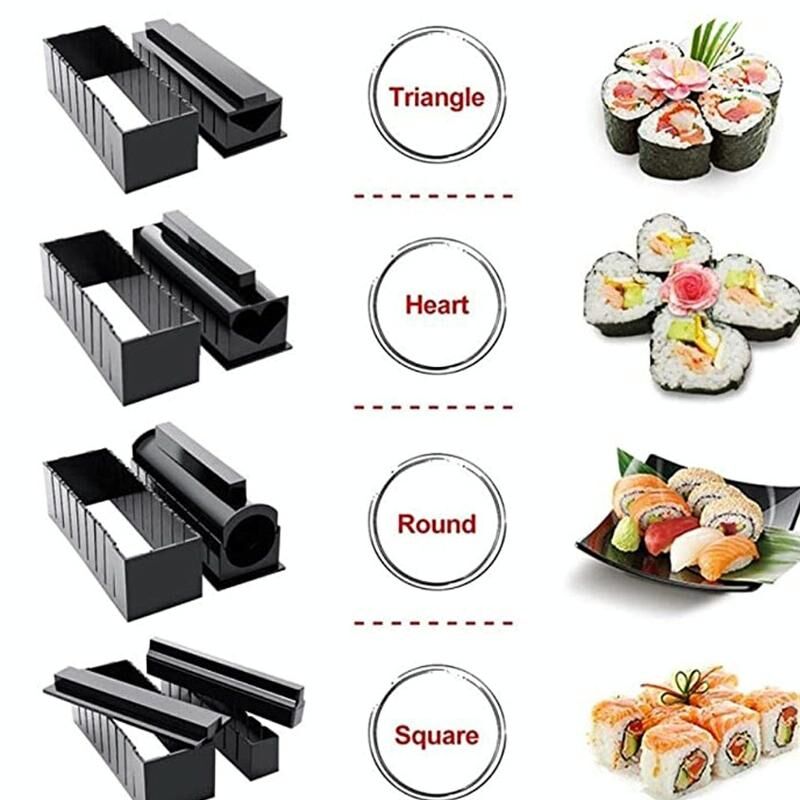 1. Το προϊόν περιέχει: στρογγυλή συσκευή παρασκευής σούσι x1 σετ, συσκευή παρασκευής σούσι σε σχήμα καρδιάς x1 σετ, τετράγωνη συσκευή παρασκευής σούσι x1 σετ, τριγωνική συσκευή παρασκευής σούσι x1 σετ, ορθογώνια συσκευή παρασκευής σούσι x1 σετ