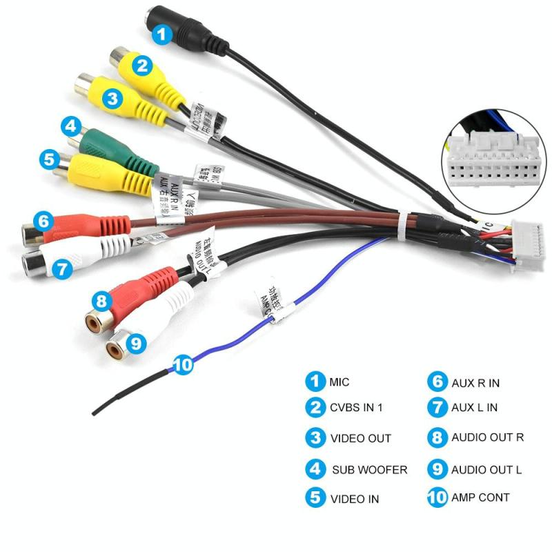 7. Rear camera (not included in standard configuration): Supports AHD HD 720P camera image input, you need to select in the settings to switch between CVBS and AHD