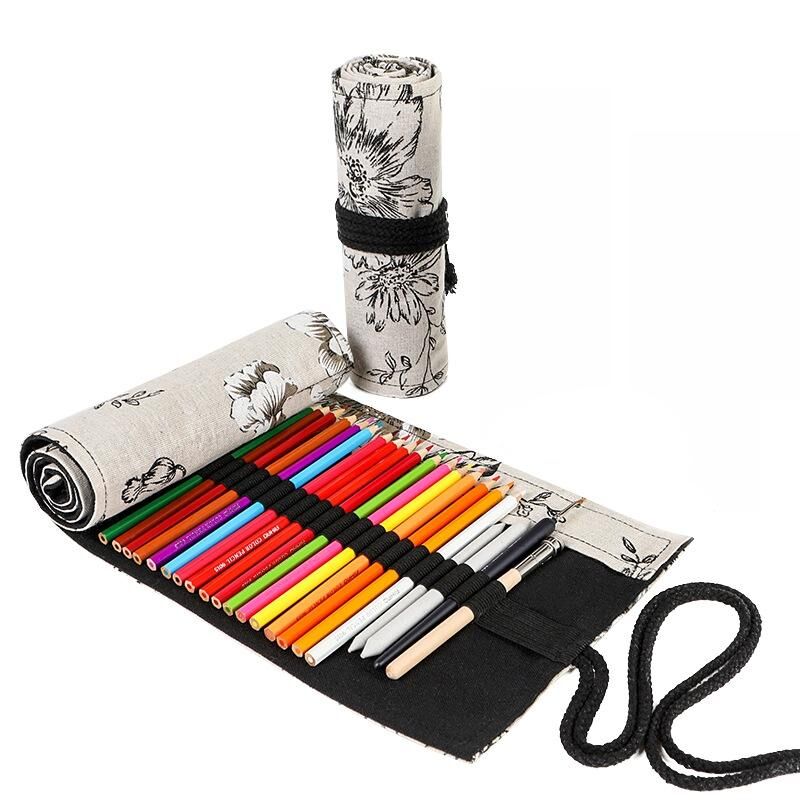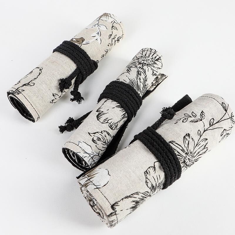 Θήκη στυλό με 12 τρύπες, καμβάς εκτύπωσης, μαύρο παιώνια, κουρτίνα, μεγάλη χωρητικότητα, θήκη για μολύβια σκίασης και έγχρωμα μολύβια, κουτί γραφικών ειδών.