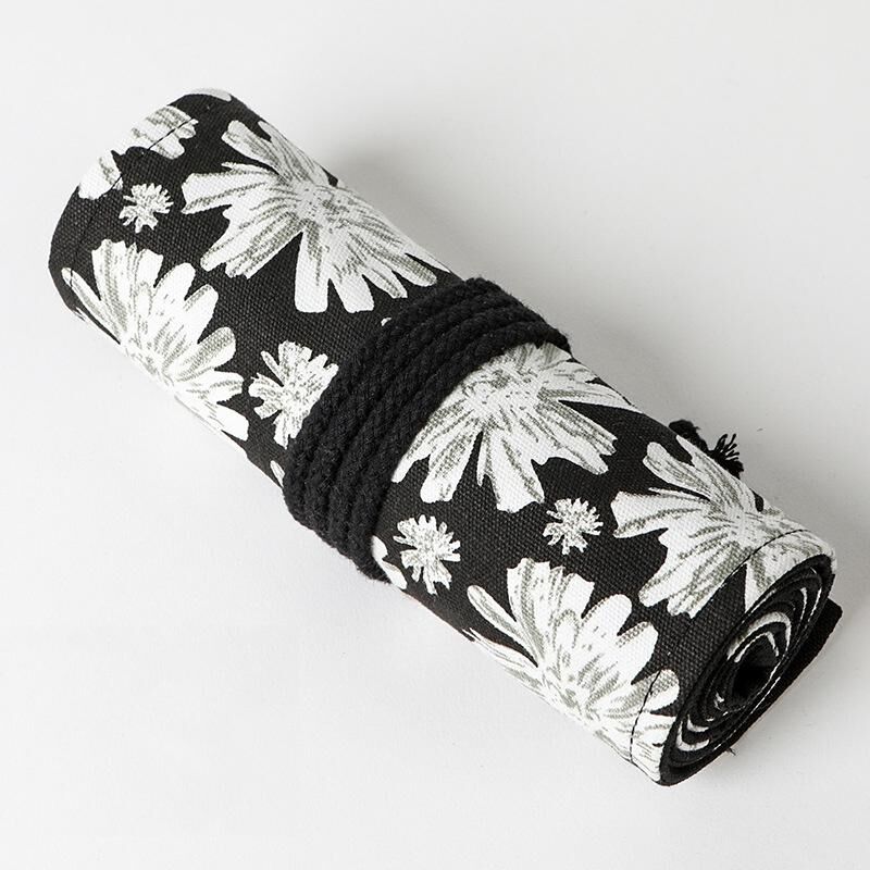 Θήκη στυλό με σχέδιο νιφάδας χιονιού, χειροποίητη από καμβά, με 12 τρύπες, μεγάλη χωρητικότητα, τύπου ρολό, για μολύβια σκίτσου και έγχρωμα μολύβια, κουτί γραφικών ειδών.