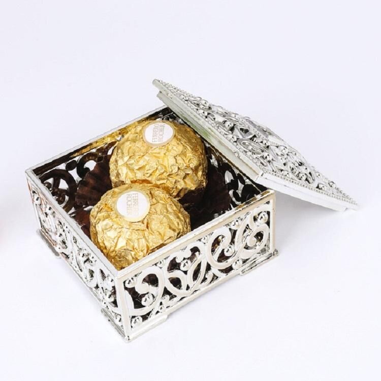 12 ΤΕΜ. Μικρά κουτιά ζαχαρωτών με διάτρητο σχέδιο, τετράγωνα, δώρα, Μέγεθος: 6x6x3,2cm (Ασημί)