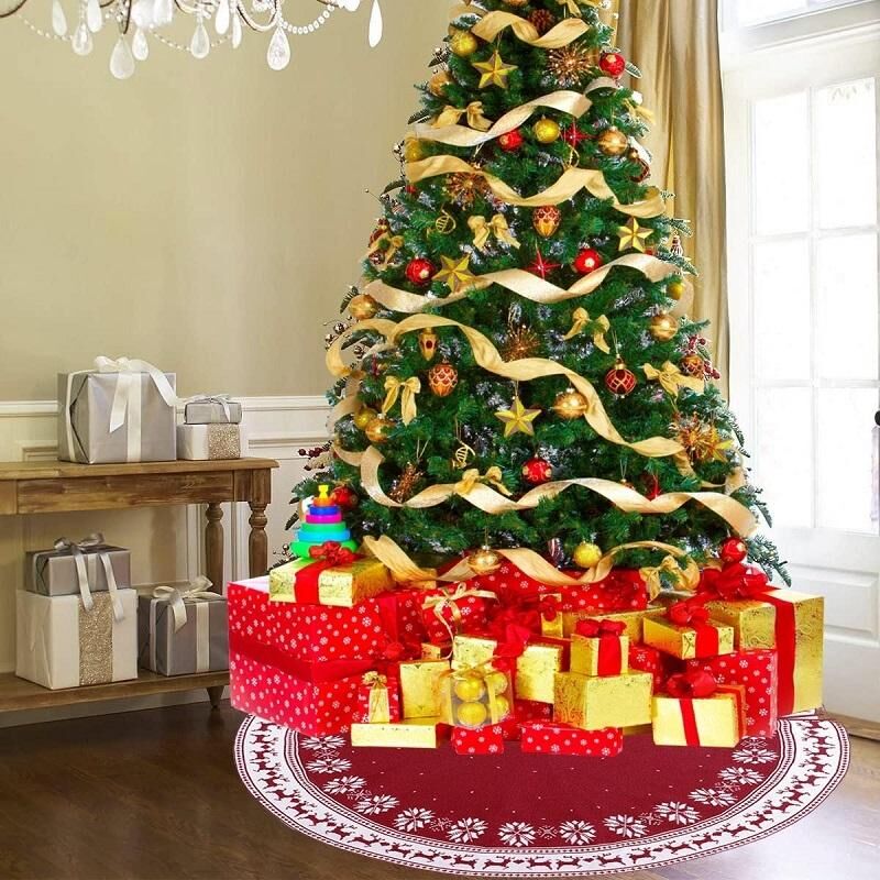 Φούστα διακόσμησης βάσης χριστουγεννιάτικου δέντρου πλεκτή από ακρυλικό, 122cm.