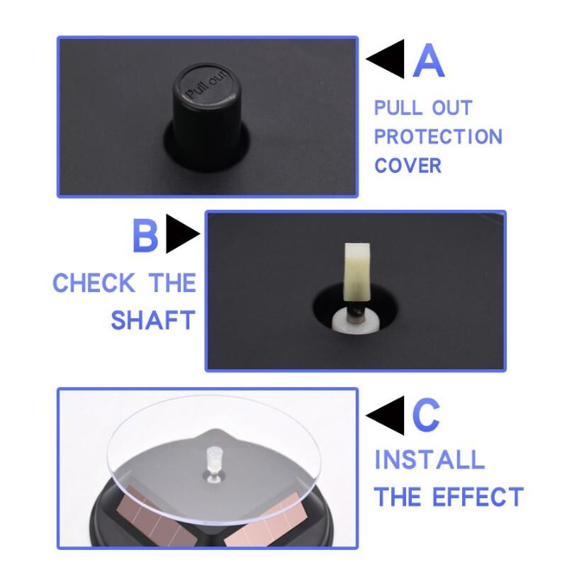 1. The solar rotary table can be driven by solar energy in places with sufficient light, and can rotate 360 degrees, which can be rotated clockwise or counterclockwise. Convenient and practical, energy saving and environmental protection, not limited by time and light