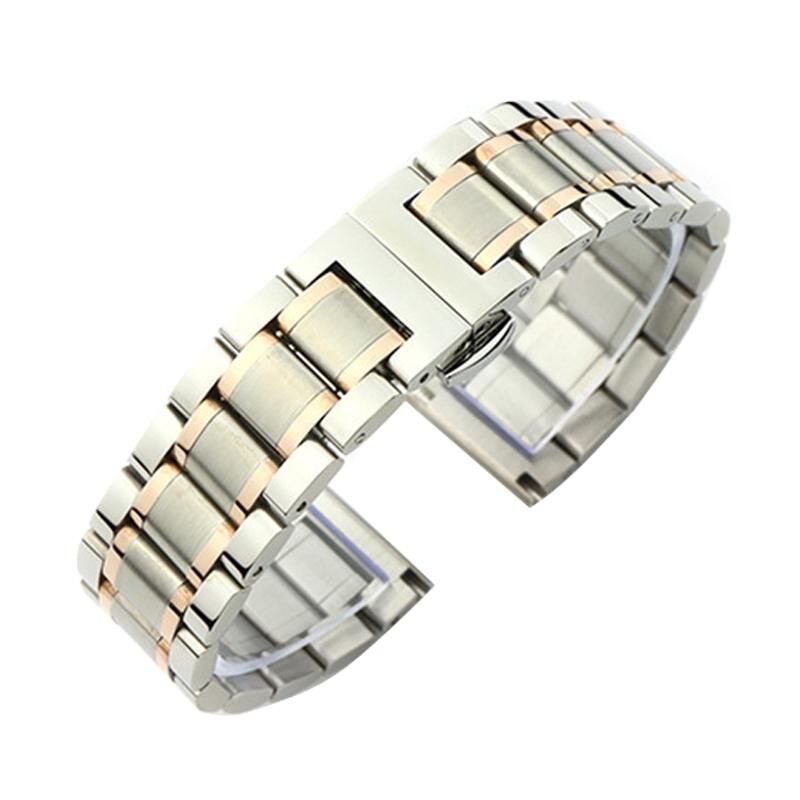 12mm Steel Bracelet Butterfly Buckle Five Beads Unisex Stainless Steel Solid Watch Strap, Color:Intermediate Rose Gold