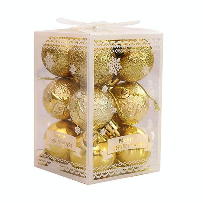 12τεμ./πακέτο Χριστουγεννιάτικες Μπάλες 4εκ. Ειδικού Σχήματος + Γκλίτερ + Λαμπερό Σετ (Χρυσό)
