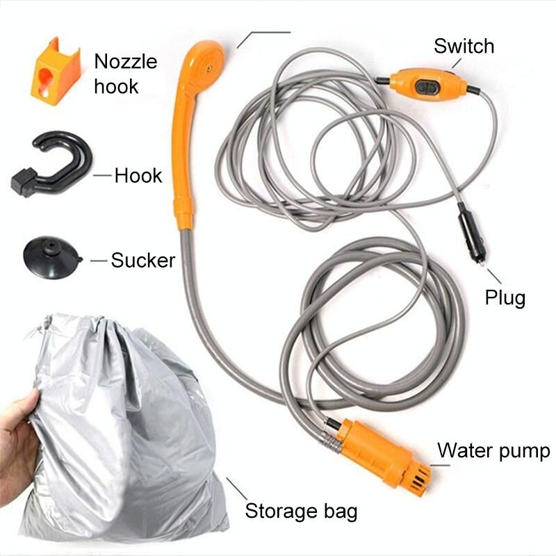 3. Απευθείας τροφοδοσία ρεύματος 12V από το όχημα κινεί την μίνι αντλία, κατάλληλο για ντους σε εξορμήσεις, κάμπινγκ, προσωρινό μπάνιο μετά από κολύμπι στη θάλασσα κ.λπ.