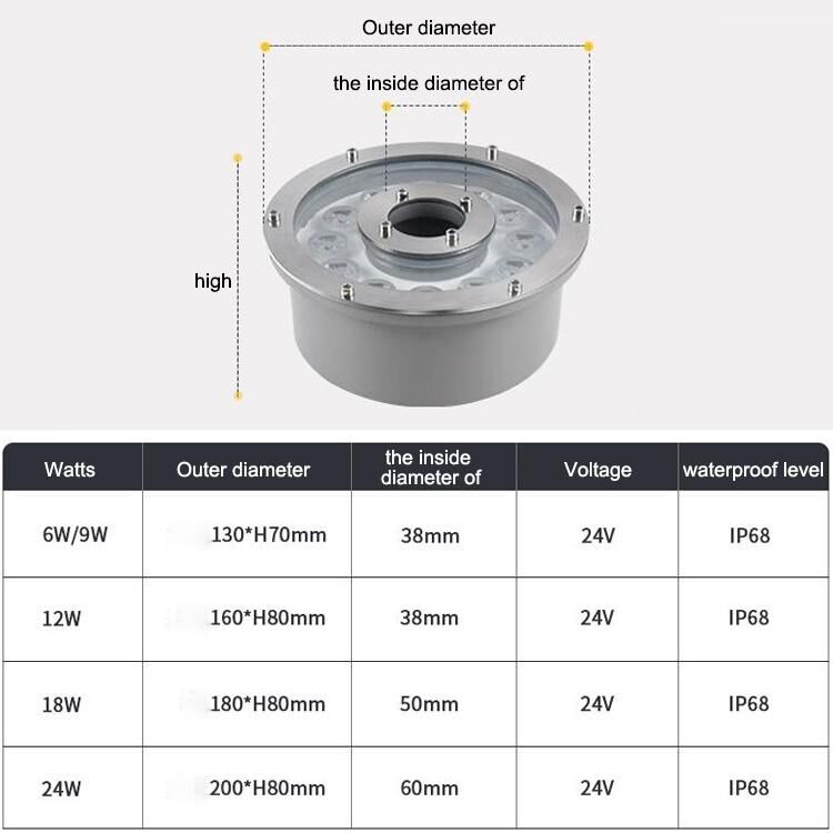 12W τοπίο πολύχρωμο χρώμα που αλλάζει το δαχτυλίδι LED κράμα αλουμινίου LED υποβρύχιο σιντριβάνι φως (πολύχρωμο)