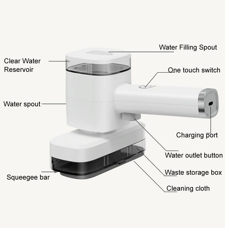 1. Λειτουργίες: σκούπισμα και ξεσκόνισμα, ψεκασμός νερού με ένα άγγιγμα, ξύστρα καθαρισμού, υγρή και στεγνή χρήση