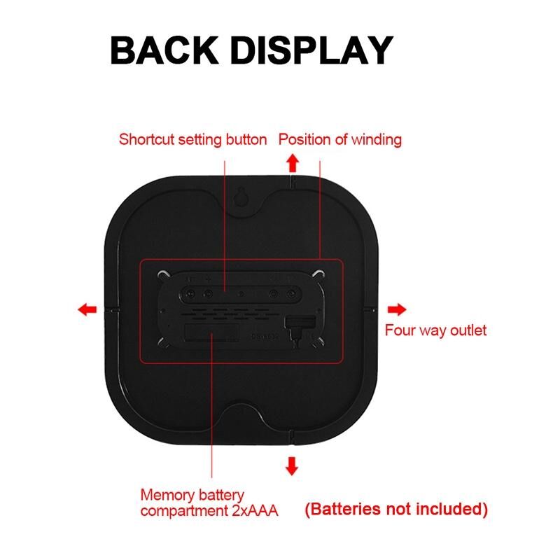 4. Functions: 12/24 hour format, date display, week display, temperature display, humidity display, timing function, two sets of alarm clocks, automatic photosensitive, remote control function
