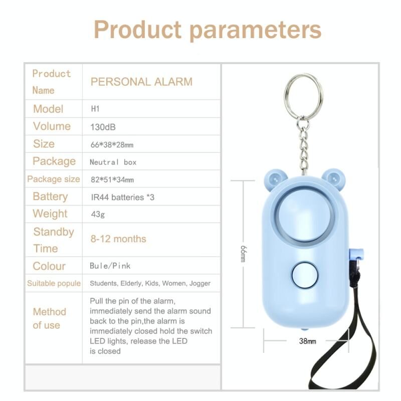 Προσωπικός Συναγερμός LED 130dB με Δακτύλιο Έλξης, Προϊόντα Αυτοάμυνας για Εξωτερικούς Χώρους, Προδιαγραφή: Στυλ Αρκούδας (Ανοιχτό Μπλε)