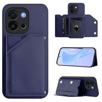 For OnePlus 13T Skin Feel Four Card Slots Phone Case with Wrist Strap(Blue)