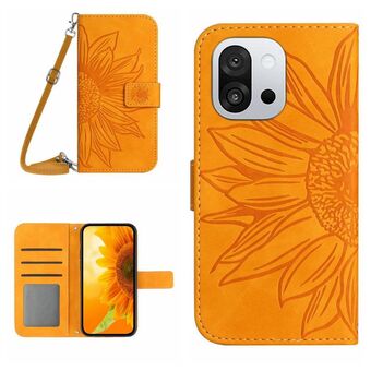 For OnePlus 13T Skin Feel Sun Flower Embossed Leather Phone Case with Lanyard(Yellow)