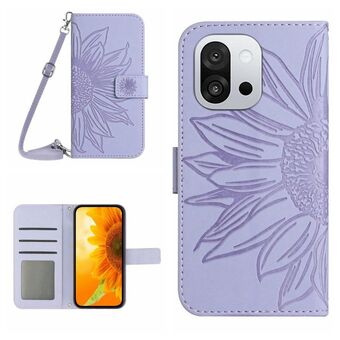 For OnePlus 13T Skin Feel Sun Flower Embossed Leather Phone Case with Lanyard(Purple)
