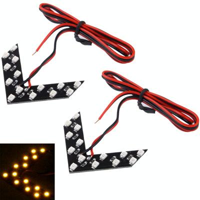14 LED 3528 SMD Arrows Light for Car Side Mirror Turn Signal, Pairs(Yellow Light)