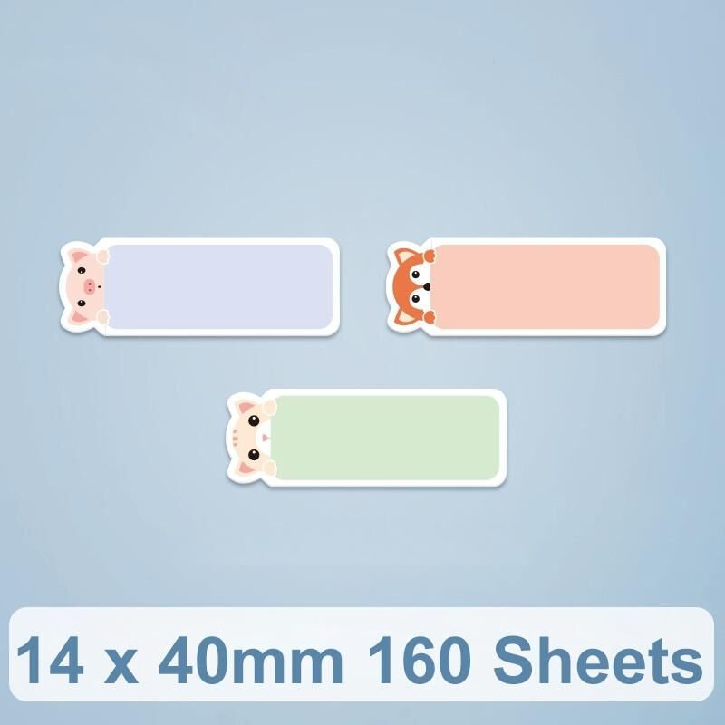 Χαρτί θερμικής εκτύπωσης ετικετών 14 x 40mm 160 φύλλων για NiiMbot D101 / D11 (Χαριτωμένα Ζώα)