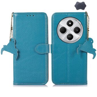 Θήκη τηλεφώνου από γνήσιο δέρμα για Redmi 14C 4G με υφή λυτσί και προστασία RFID (Πράσινο)