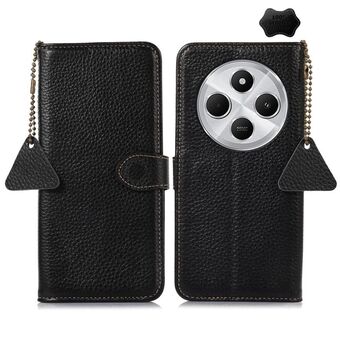 Θήκη τηλεφώνου από γνήσιο δέρμα για Redmi 14C 4G με υφή λυτσί και προστασία RFID (Καφέ)