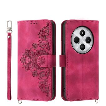 For Redmi 14C 4G Skin Feel Flowers Embossed Wallet Leather Phone Case(Pink)