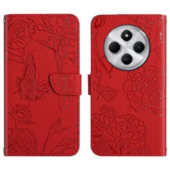 For Redmi 14C 4G Skin Feel Butterfly Embossed Flip Leather Phone Case(Red)