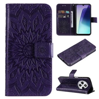 Για Redmi 14C 4G ανάγλυφο ηλιοτρόπιο μοτίβο Flip υπόθεση τηλεφώνου δέρμα (μωβ)