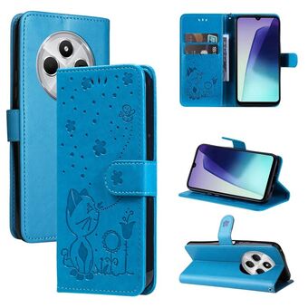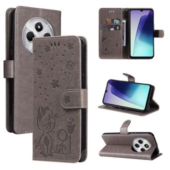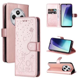 Θήκη τηλεφώνου από δέρμα με ανάγλυφο σχέδιο γάτας και μέλισσας, τύπου flip, για Redmi 14C 4G Global (Κόκκινο)