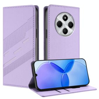 Θήκη τηλεφώνου από δέρμα retro, πολυλειτουργικό πορτοφόλι με ανάγλυφο σχέδιο για Redmi 14C (Ανοιχτό Μωβ)