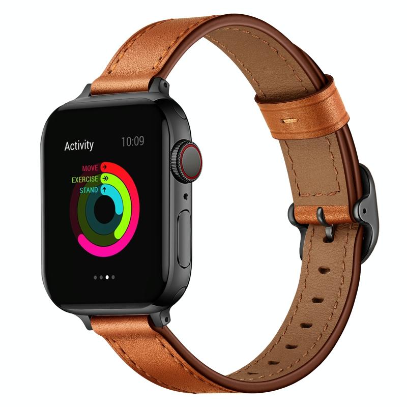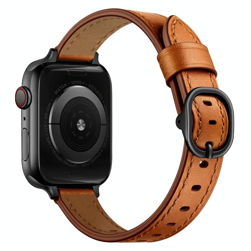 14mm Leather Watch Band For Apple Watch Series 9&8&7 41mm / SE 3&SE 2&6&SE&5&4 40mm / 3&2&1 38mm(Semi Oil Brown Black Buckle)