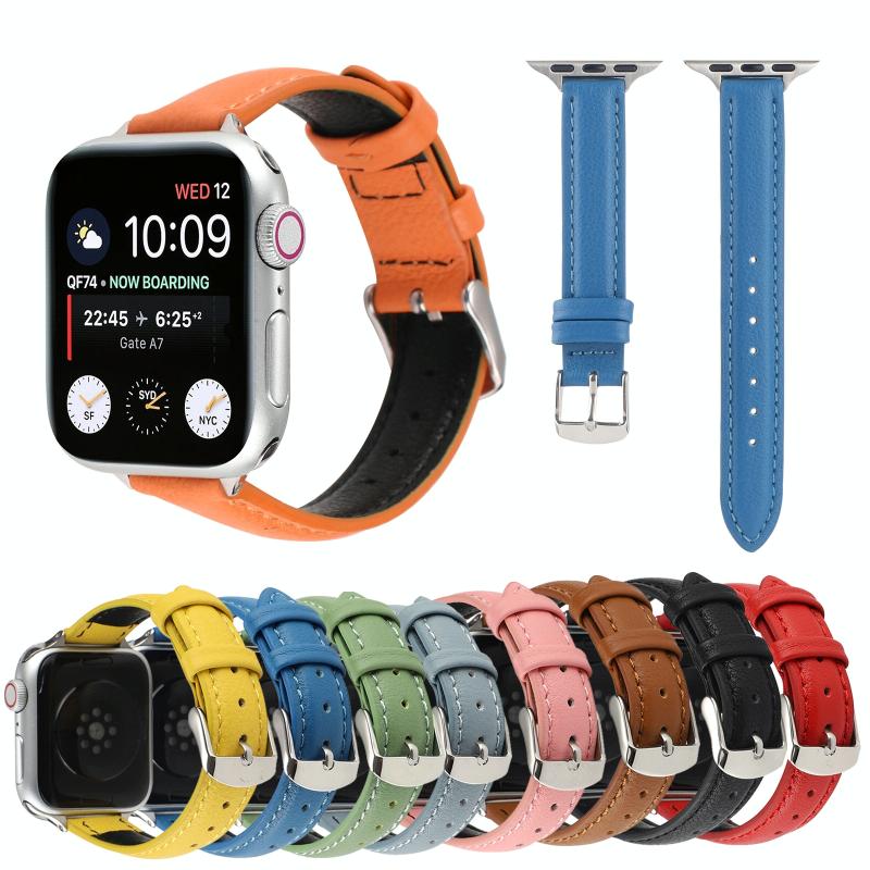 14mm Slim Genuine Leather Watch Band Watch Band For Apple Watch Series 9&8&7 41mm / SE 3&SE 2&6&SE&5&4 40mm / 3&2&1 38mm(Blue)