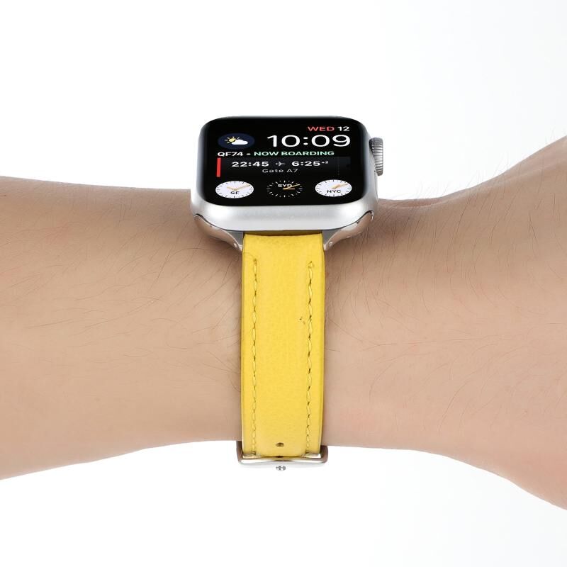 14mm Slim Genuine Leather Watch Band Watch Band For Apple Watch Series 9&8&7 41mm / SE 3&SE 2&6&SE&5&4 40mm / 3&2&1 38mm(Yellow)