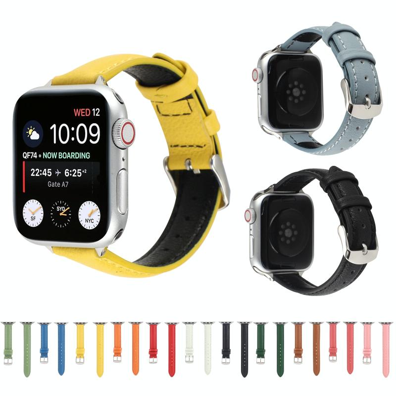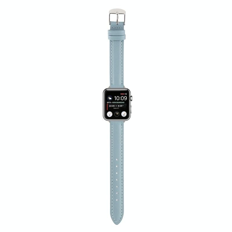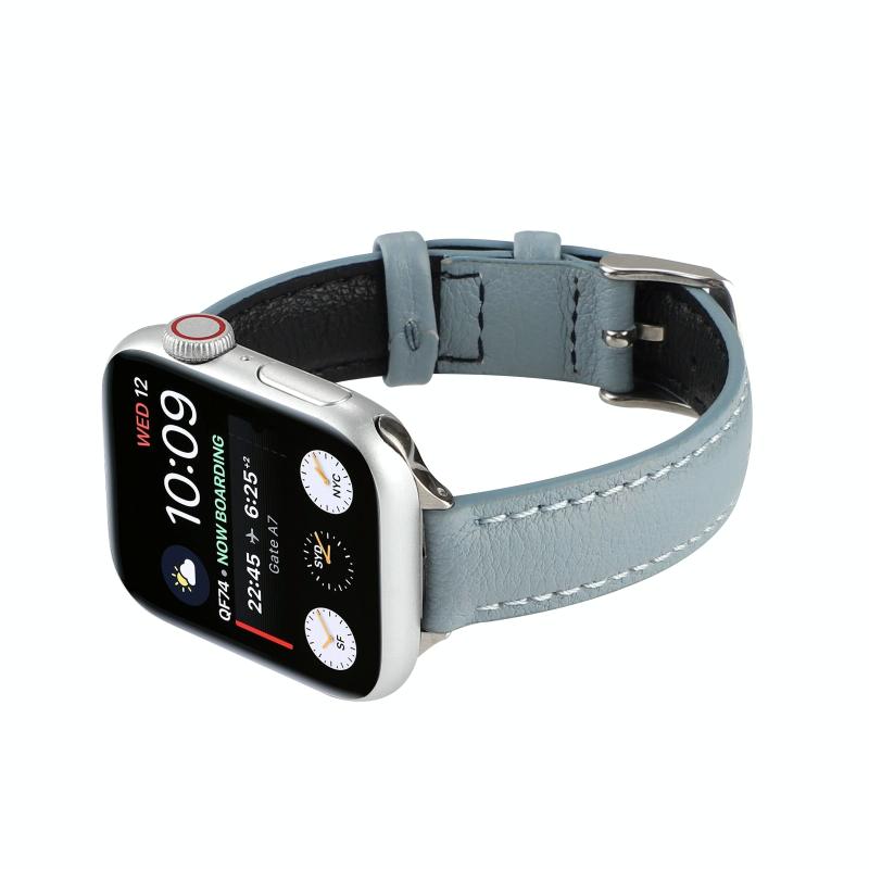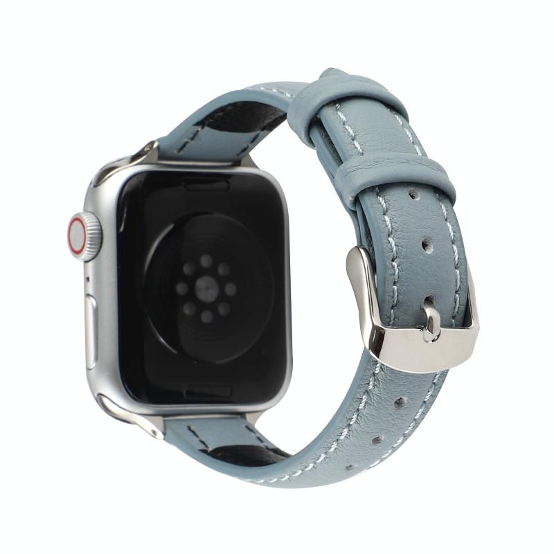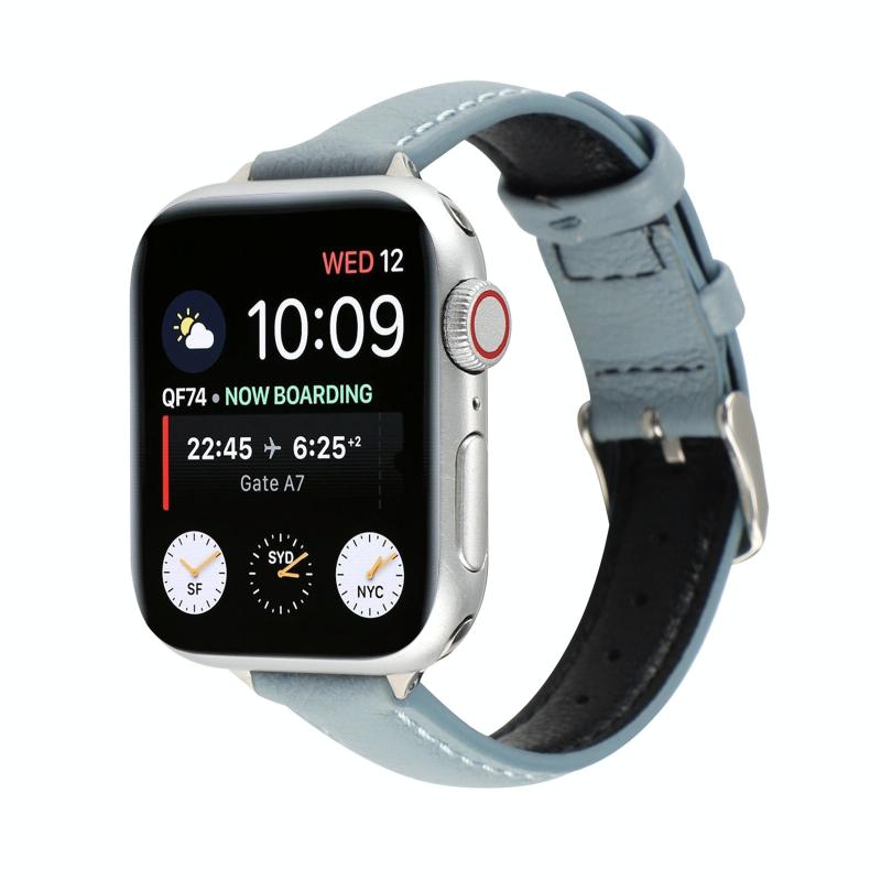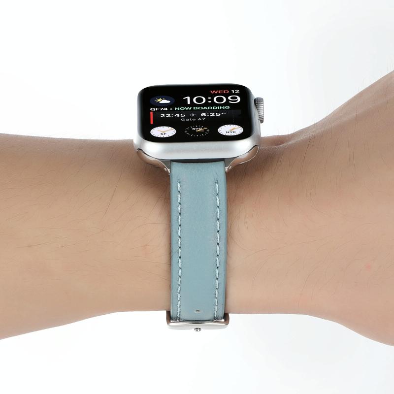 Λουρί ρολογιού από γνήσιο δέρμα 14mm, λεπτό, για Apple Watch Ultra 49mm & Watch Ultra 2 49mm / Series 9 & 8 & 7 45mm / SE 3 & SE 2 & 6 & SE & 5 & 4 44mm / 3 & 2 & 1 42mm (Ανοιχτό μπλε)