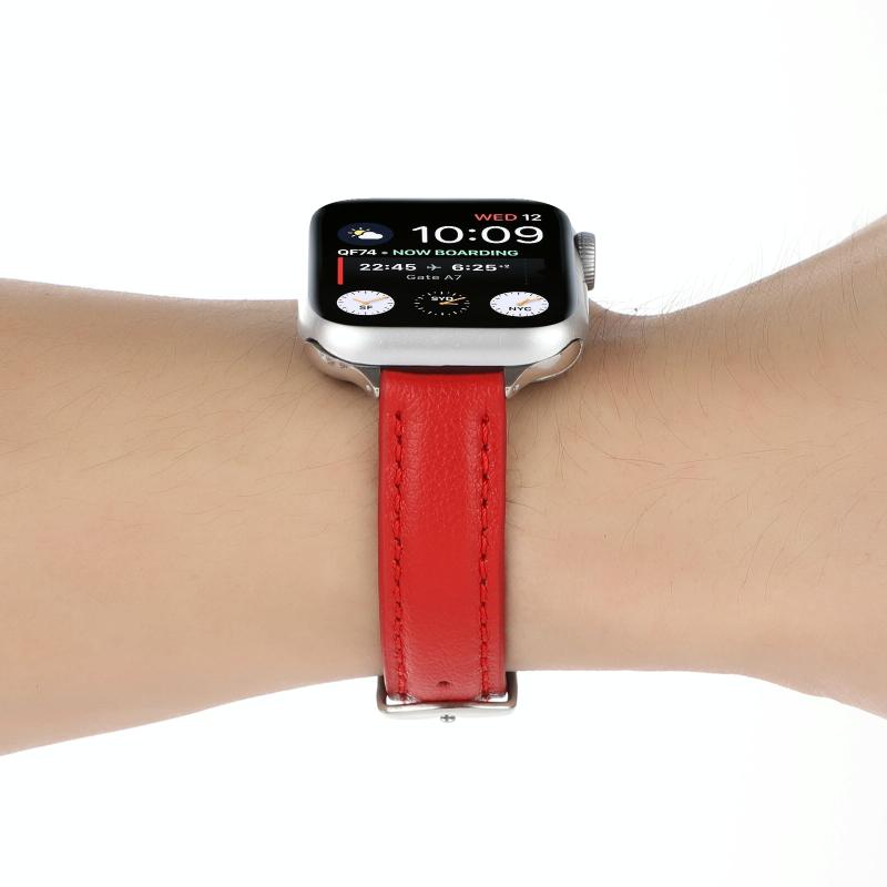 Λουρί ρολογιού από γνήσιο δέρμα 14mm, λεπτό, για Apple Watch Ultra 49mm & Watch Ultra 2 49mm / Series 9 & 8 & 7 45mm / SE 3 & SE 2 & 6 & SE & 5 & 4 44mm / 3 & 2 & 1 42mm (Μαύρο)