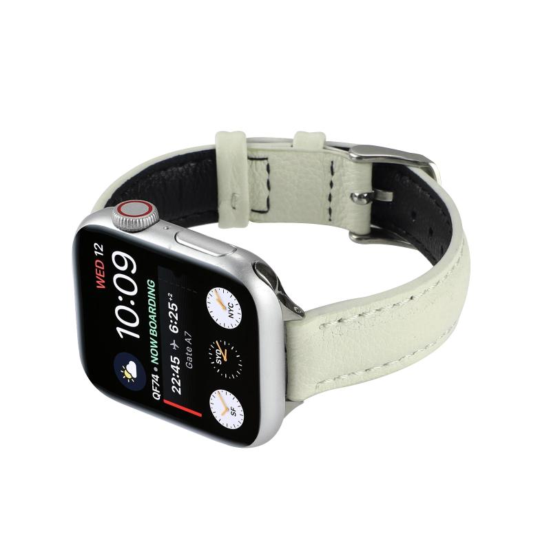 Λουρί ρολογιού από γνήσιο δέρμα 14mm, λεπτό, για Apple Watch Ultra 49mm & Watch Ultra 2 49mm / Series 9 & 8 & 7 45mm / SE 3 & SE 2 & 6 & SE & 5 & 4 44mm / 3 & 2 & 1 42mm (Μαύρο)