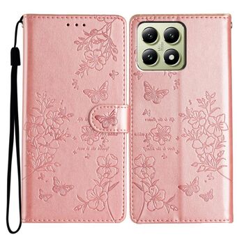 For Xiaomi 14T Butterflies and Flowers Leather Phone Case(Rose Gold)
