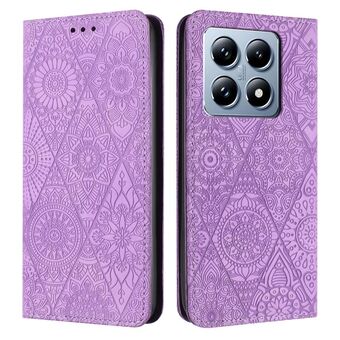 For Xiaomi 14T Ethnic Embossed Adsorption Leather Phone Case(Purple)