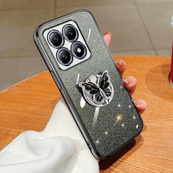 Θήκη κινητού τηλεφώνου Xiaomi 14T Pro με επιμετάλλωση, διαβαθμισμένη λάμψη, πεταλούδα (Black)