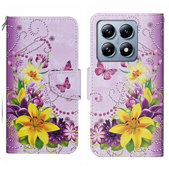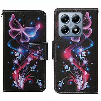 Θήκη τηλεφώνου δερμάτινη με πολύχρωμο σχέδιο για Xiaomi 14T Pro (Φωτεινή Πεταλούδα)