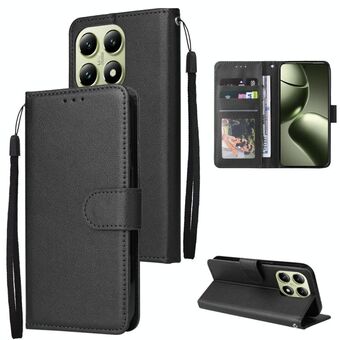 Για Xiaomi 14T Pro 3-Card Slots πολυλειτουργική δερμάτινη θήκη τηλεφώνου (μαύρο)