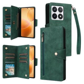 Για Xiaomi 14T Pro Πολυλειτουργικό παγωμένο φερμουάρ πορτοφόλι δερμάτινη θήκη τηλεφώνου (καφέ)