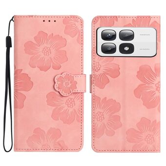 Για Xiaomi 14T Pro λουλούδι ανάγλυφο μοτίβο δερμάτινη θήκη τηλεφώνου (ροζ)