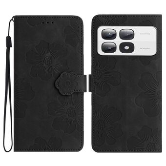 Για Xiaomi 14T Pro λουλούδι ανάγλυφο μοτίβο δερμάτινη θήκη τηλεφώνου (μαύρο)