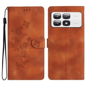 Για Xiaomi 14T Pro λουλούδι πεταλούδα ανάγλυφο μοτίβο δερμάτινη θήκη τηλεφώνου (καφέ)