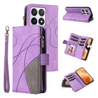 Για Xiaomi 14T Pro Διπλό χρώμα 9 υποδοχές καρτών φερμουάρ πορτοφόλι δερμάτινη θήκη τηλεφώνου (μωβ)