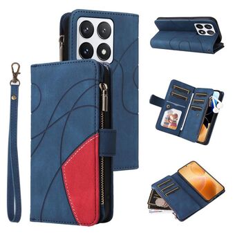 Για Xiaomi 14T Pro Διπλό χρώμα 9 υποδοχές καρτών φερμουάρ πορτοφόλι δερμάτινη θήκη τηλεφώνου (μπλε)