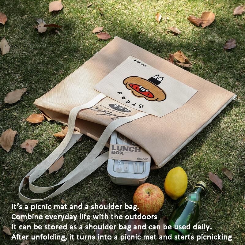 1. It is a picnic mat and a shoulder bag, combining daily life with outdoor use. It can be stored as a shoulder bag for daily use; unfolded and transformed into a picnic mat for picnics