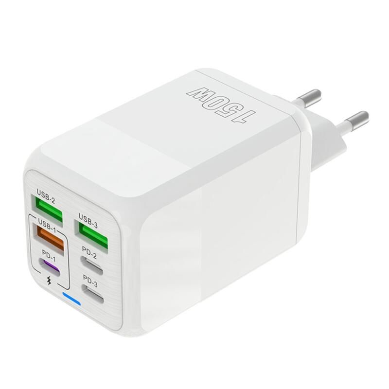 Φορτιστής πολλαπλών θυρών 150W με 3 x USB + 3 x USB-C / Type-C, Γρήγορη φόρτιση, Ευρωπαϊκό βύσμα (Μαύρο)
