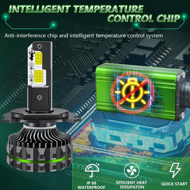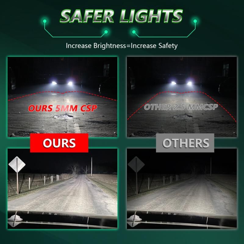 12. Τσιπ LED CSP 8760, εξαιρετικά υψηλή φωτεινότητα, διάρκεια ζωής έως και 50.000 ώρες, κάθε αντίθεση φτάνει τα 120 6500K, η φωτεινή ροή φτάνει τα 18.000 lumens ανά ζεύγος, φωτεινότερη από τους ολογραφικούς λαμπτήρες